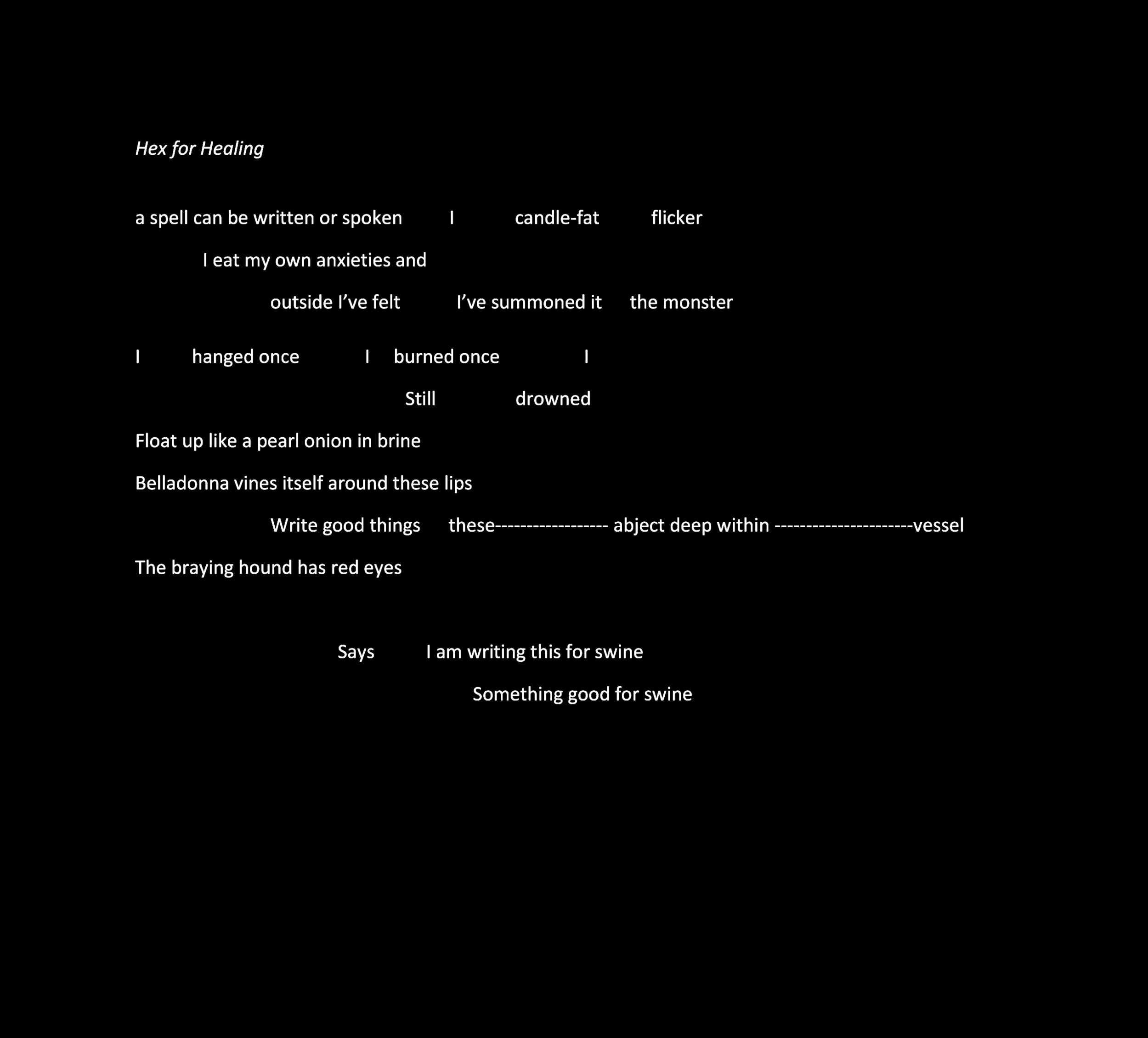 Denise Bickford is a queer poet from mid-coast Maine. They received their MFA in creative writing from Boise State University in 2016. Their work has appeared in Stolen Island, Glint Literary Magazine, Lipstick Party Magazine, and Black Napkin Press.