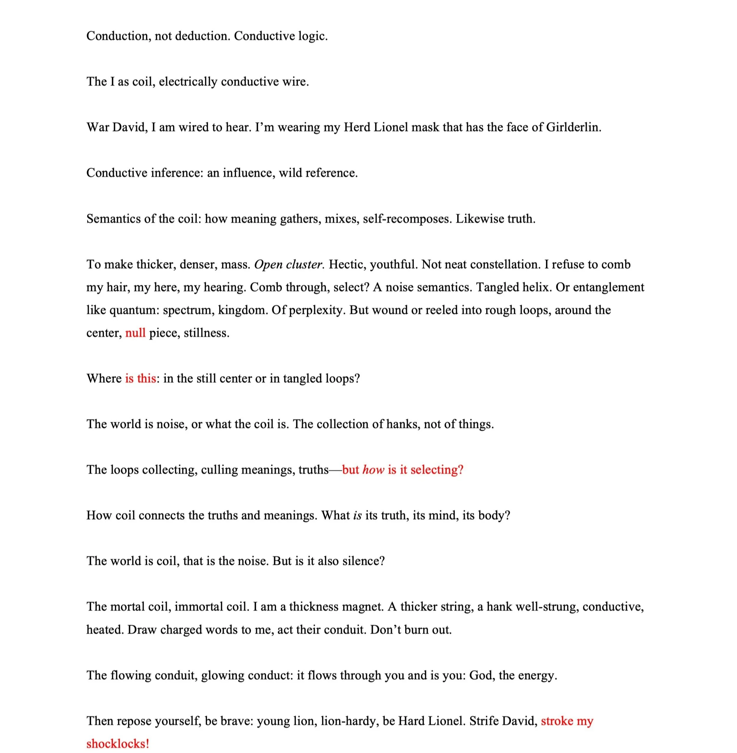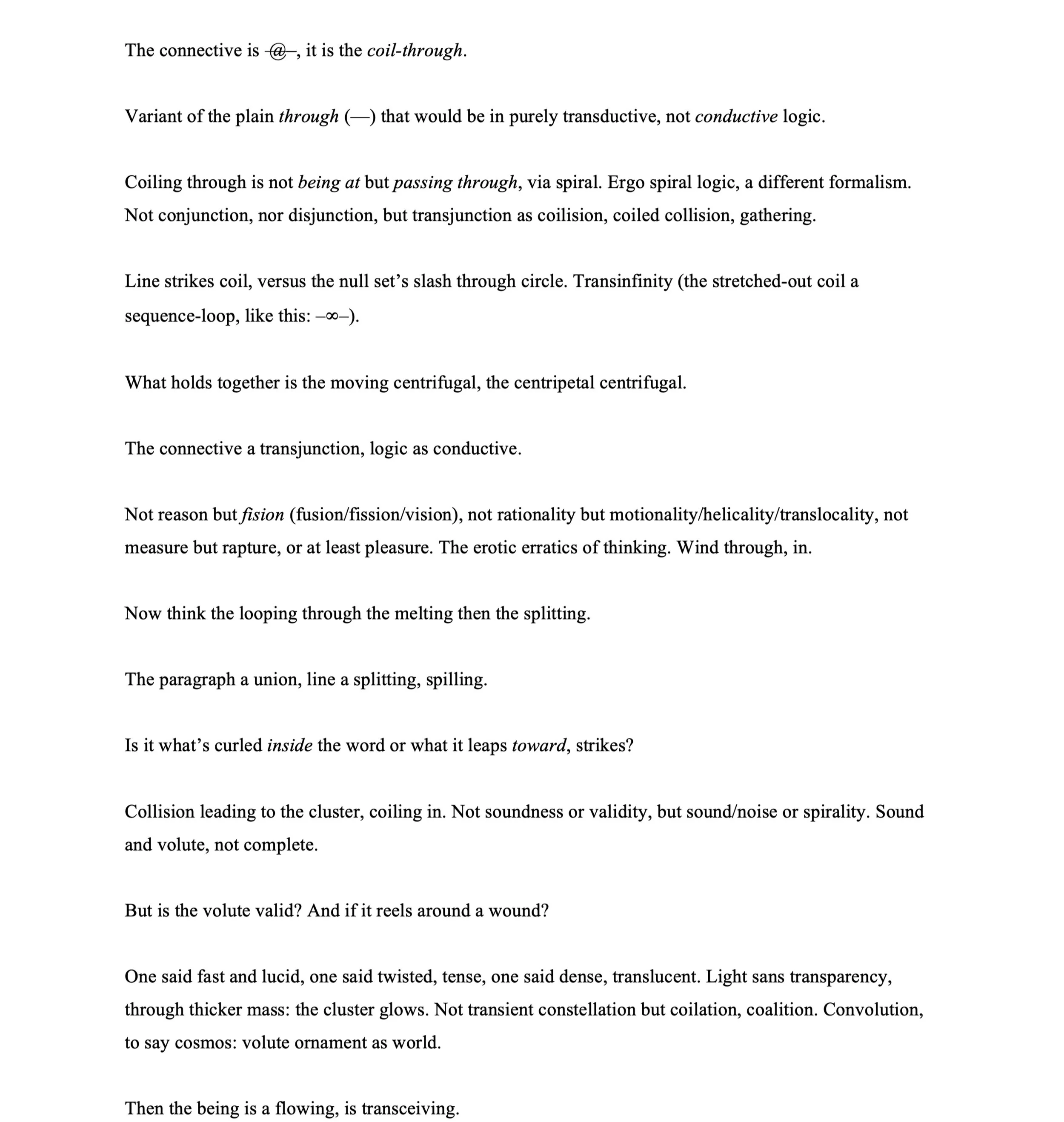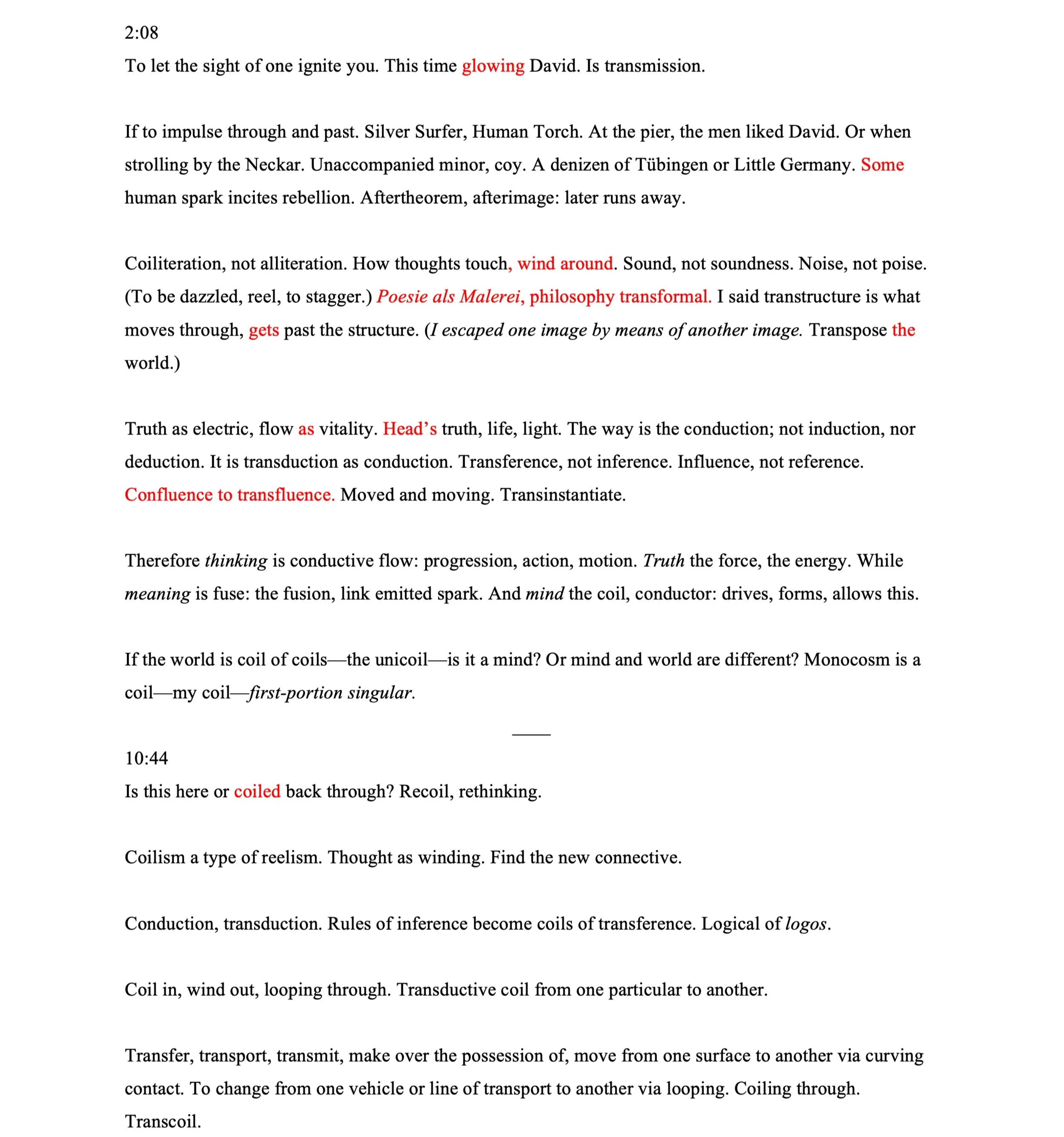 Lou Pam Dick (aka Moina/Misha/Gregoire/Mina Pam Dick et al.) is the author of Moira of Edges, Moira the Tart (OPR, 2019), this is the fugitive (Essay Press, 2016), Metaphysical Licks (Book*hug, 2014) and Delinquent (Futurepoem, 2009). Her book I am writing you from afar is forthcoming from Black Sun Lit in 2021. With Oana Avasilichioaei, she is the co-translator of Suzanne Leblanc’s The Thought House of Philippa (Book*hug, 2015), and her own writing has been misadapted into French by Montreal poet Steve Savage. Also a visual artist and lateral philosopher, Dick lives in New York City.